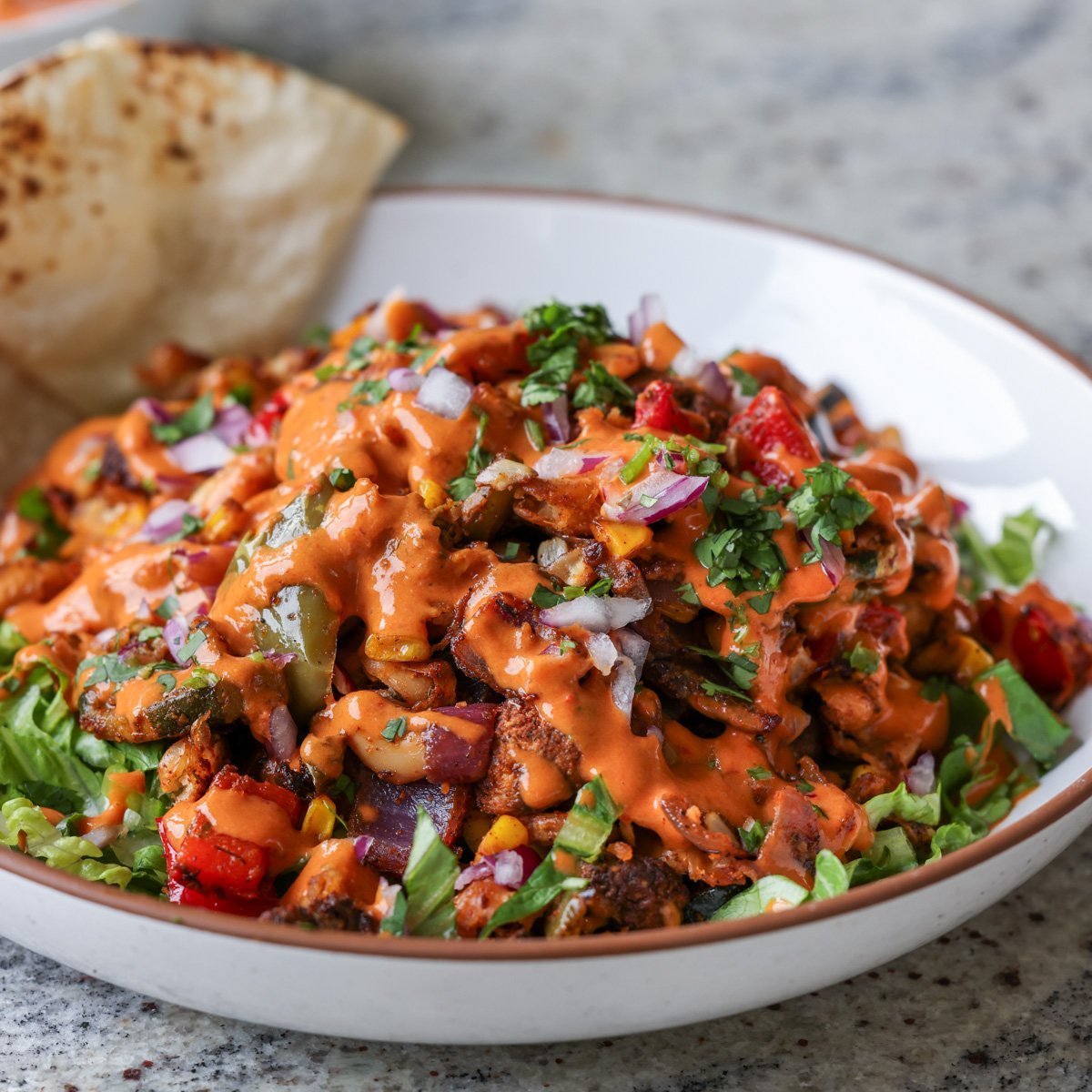 This dish is spicy, smoky, creamy, and tangy. It’s just an amazing blend of flavors! It has protein from the beans, nutritional yeast, and yogurt. You can up the protein by adding hemp seeds into the dressing or as a topping.